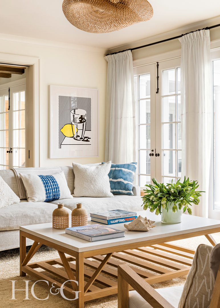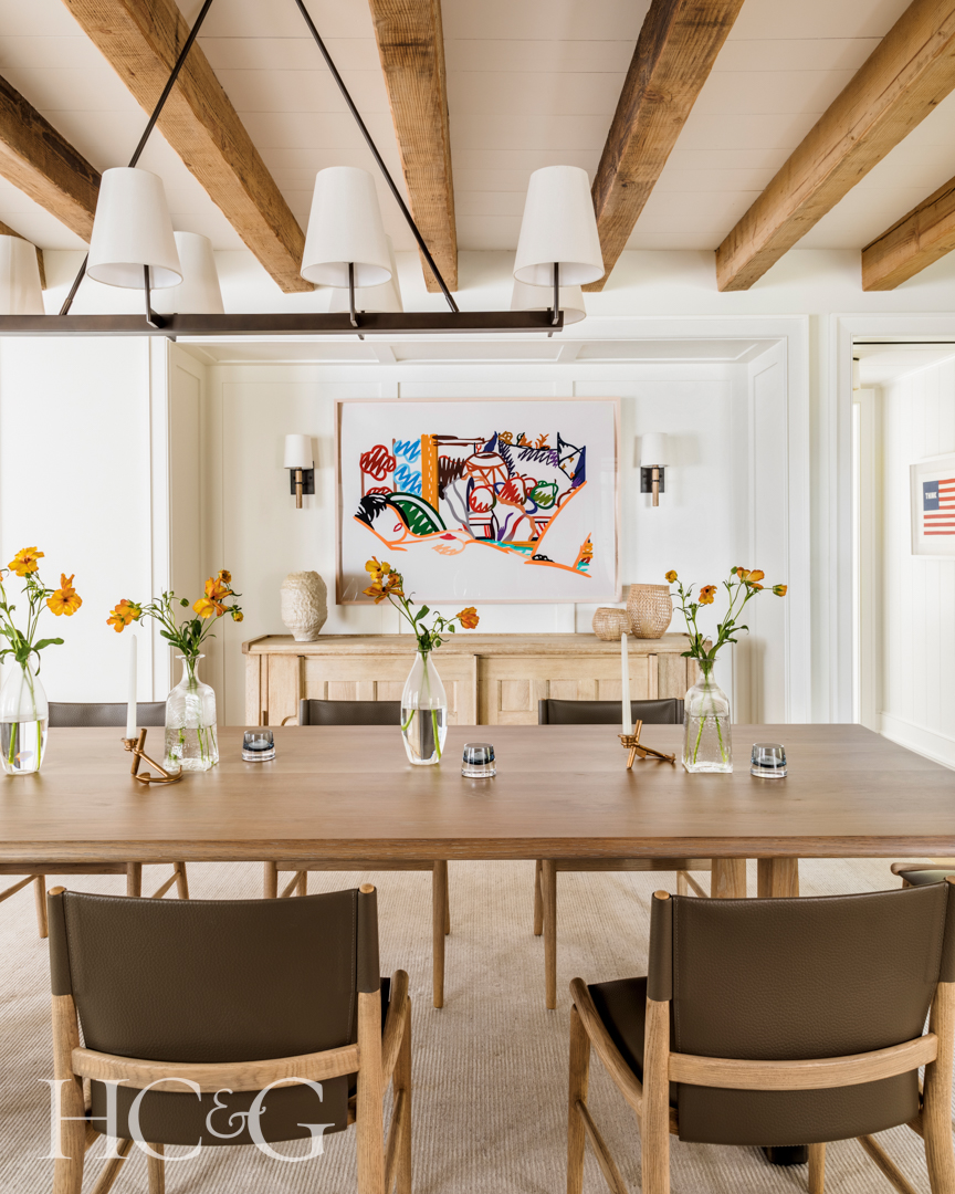 Hagan concurs that establishing the right flow was essential. “This was built at a different time for people who lived differently,” she says. “For a beach house, the flow is very important. The clients have grown children who visit and they also like to entertain, so we wanted it to be fun and casual and maintain that feeling of being near the dunes. It was dark before, but now there’s a sense of light and being connected to the ocean breezes.” This proximity to the beach had a profound impact on the palette, which highlights natural elements, a variety of neutrals and soft blues, while providing a soothing backdrop for the clients’ art collection.