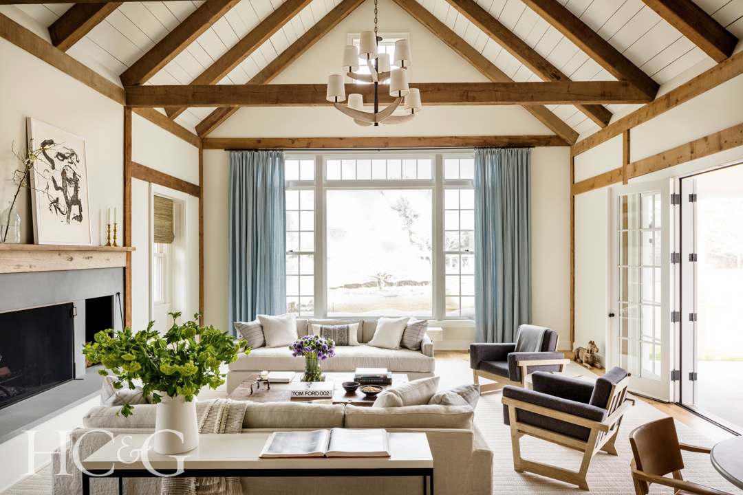 When a West Coast couple tapped interior designer Victoria Hagan and Botta Sferrazza Architects to renovate their carriage house in Amagansett, everyone was on the same page from the start. The 6,600-square-foot six-bedroom residence—which was built during the 1920s or ’30s—had great bones that they wanted to preserve and celebrate. The clear selling point, aside from the property’s bucolic two acres being only steps from the beach, was the soaring living room featuring a vaulted ceiling studded with original beams. “Do you know when a home gets you at Hello?” says Hagan. “This living room is that moment. It has great proportions, and I love the juxtaposition of scale between this space and the smaller, cozier rooms. We reworked the fireplace and added a large picture window. The house was an unpolished gem that just needed some tweaks that were in keeping with the personality of the property.”