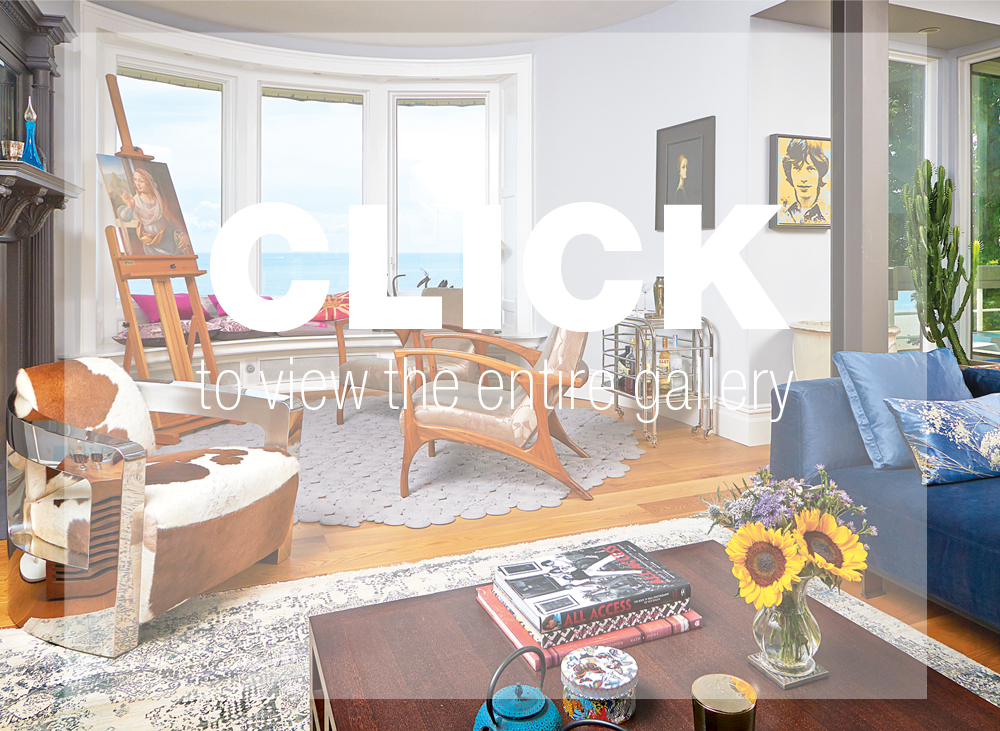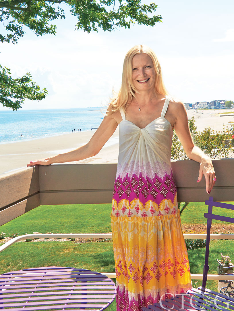 In search of a weekend retreat, Beaupère first discovered the structure that houses her condo while strolling the beach that fronts the property. “I often came here to escape the craziness of New York, and I always passed this building and really liked it,” she says about the stone and wood edifice built in the 1880s by Milford’s own Henry Augustus Taylor. With its turret and French Normandy overtones, the architecture transported the designer back to her roots. “Then one day, I saw a for-sale sign on one of the units. I took a look at the main room with that round window and knew I had to have it.”
