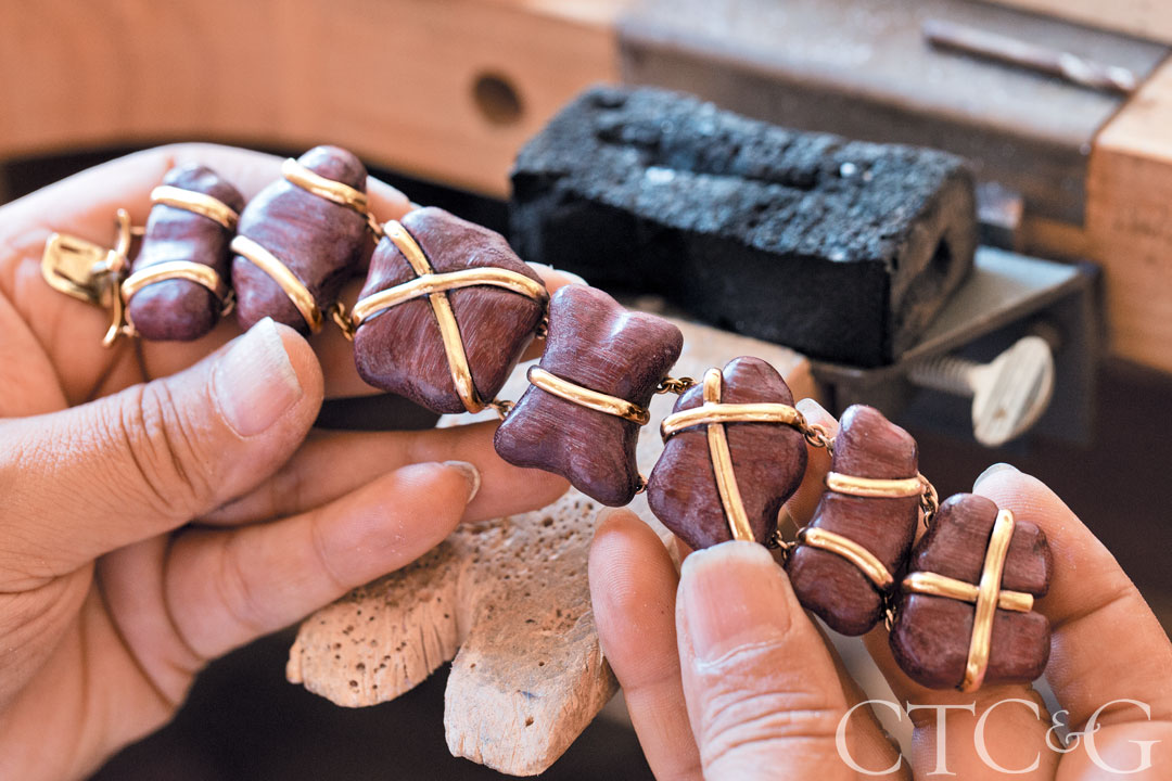 Jewelry that evokes a deep emotion is how this husband-and-wife team describe the wearable art they create and sell at their boutique. Unexpected materials and a fresh mix of stones have made Sorab & Roshi’s designs stand apart. This link bracelet in purple-heart wood and rose gold is simply stunning. Greenwich, 203-869-5800, sorabandroshi.com.