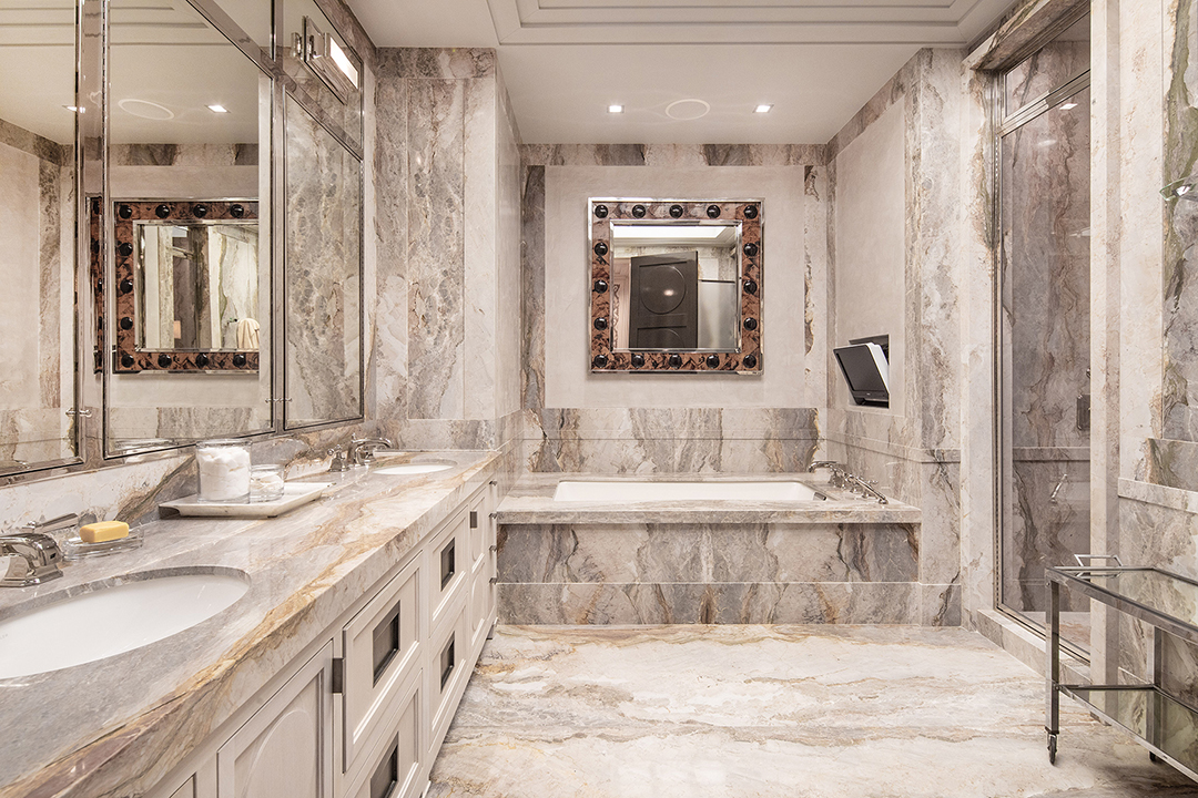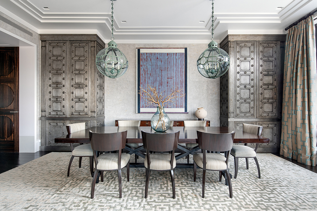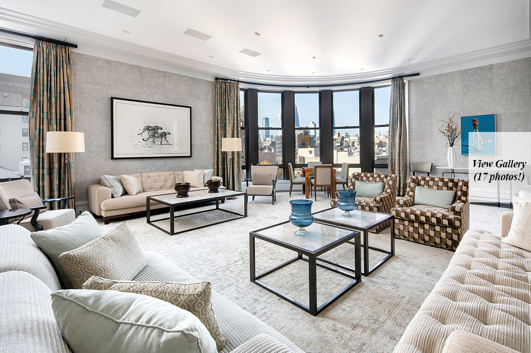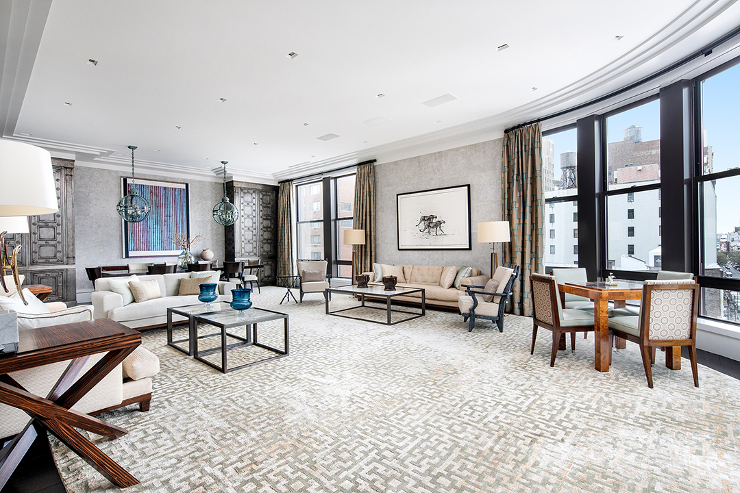 Famed interior designer Steven Gambrel creates stunning, livable spaces, which is why when a property he has decorated hits the market people take notice. One such eye-catching apartment is now for sale in Greenwich Village asking $14.2 million. Gambrel, who is no stranger to working on projects in this neighborhood, is also responsible for breathtaking homes in the West Village and Sag Harbor. This apartment, located at 65 West 13th Street, had good bones to start with, but Gambrel’s brilliant vision has taken it to the next level.Spread across a 5,800-square-foot, single story floor plan, the 4.5-ebdroom, 4.5-bathroom unit’s spaciousness is simply icing atop a deliciously designed cake. Upon entrance, the home welcomes visitors with a dramatic, black-and-white marble formal entry gallery. From there, Gambrel makes use of the building’s curved façade in a sweeping great room with classic crown moldings and oversized windows offering stunning views of Manhattan. A subtle set of pocket doors lead onward to the eat-in kitchen, where floor-to-ceiling glass-front cabinetry and stainless steel appliances surround an enormous Quartzite center island. A wet bar and wine room round out the social spaces.The real showstoppers lie beyond closed doors; the master suite is outfitted with Aquasanta marble and boasts twin walk-in closets, a home gym, and direct access to the expansive laundry room. Another suite shares the northern view, while the other three bedrooms occupy the south wing.Danny Davis, Lisa Balbuena, and Lisa Resnick of The Corcoran Group have the listing.