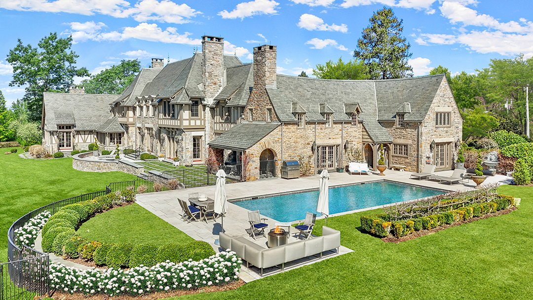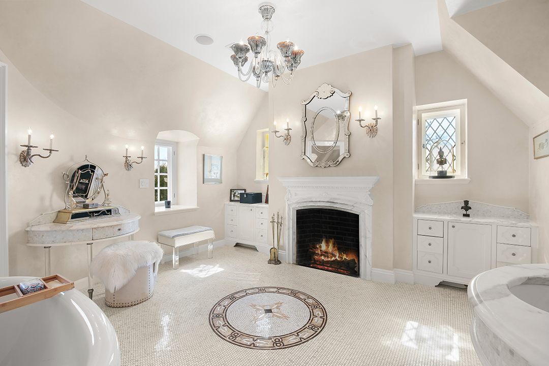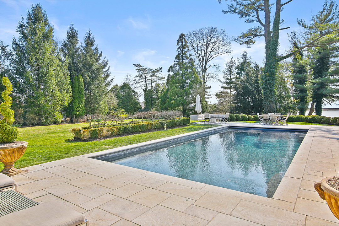 The lavish fun continues outdoors with a covered terrace with yet another fireplace and a pretty pool and terrace. All of this comes for a high price, of course. It’s listed for $15.495 million with Joanne Mancuso of Houlihan Lawrence.