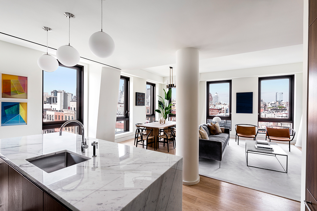 A posh new development, aimed at revitalizing Manhattan’s Lower East Side, is making waves with the listing of its first condominium. The $2.8M condo resides in 242 Broome, located in a new mixed-use development known as Essex Crossing which includes 1,000 new residences. Its mixture of modern flair and artistic elegance will entice buyers looking for a trendy place to call home.The highly-anticipated pad is furnished by ASH NYC, who drew inspiration from the pulsing art scene that envelopes the surrounding neighborhoods. The interiors of the spacious two-bedroom spread were designed by DXA who incorporated rich materials throughout the home. The accessible kitchen welcomes visitors with deep walnut cabinetry, grey-veined marble countertops and top-notch Gaggenau appliances. The sunny living room sits adjacent, featuring contemporary art sourced from local hotspot Denny Gallery.The 55-unit building, conceived by the masterminds behind the Barclays Center, inspires comparable magnificence. Buyers will be captivated by the building’s exquisite amenities such as a fitness center, entertainment area and fully furnished rooftop, displaying panoramic views of the city.The hip, up-and-coming location offers everything from mouthwatering eateries, lush parks and unparalleled art and entertainment.For breaking news on recently listed residences, follow dailyDEEDs on Instagram!