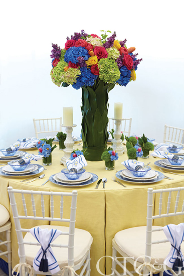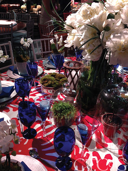 Above photo: This table was designed by Honorary Design Chair Mary McDonald of Bravo TV’s “Million Dollar Decorators” with chairs and tabletop by Crate & Barrel and flowers from The Flower Bar.