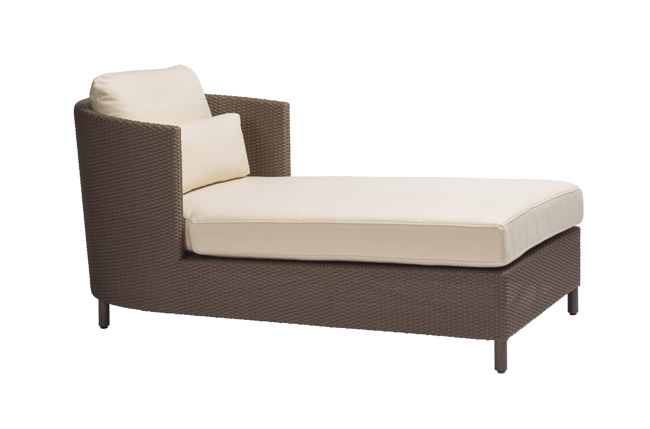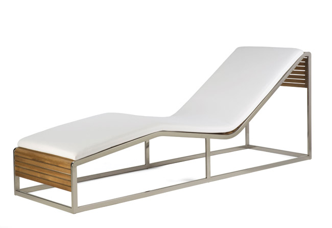 A handsome woven gray seat and polished marine-grade stainless steel give an urban look to the MC107 chaise from the Summit Modern collection. SFDC, 415-621-1638, summitfurniture.com.