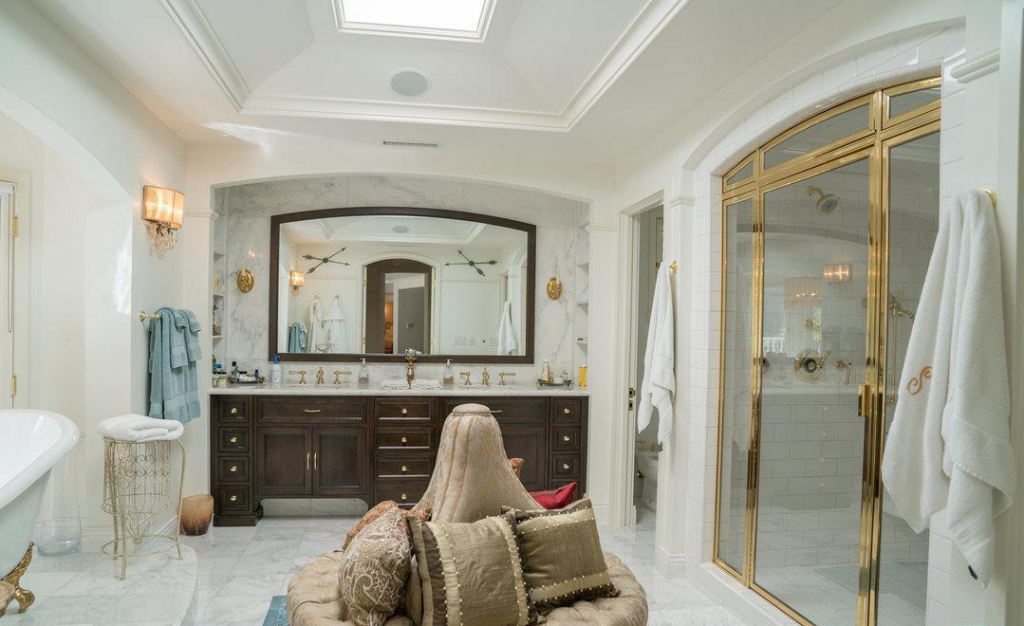 Boasting 2.763 acres of land, the property is one of the largest lots in Stone Canyon. The expansive grounds do not contain a top-of-the-line tennis court as would be expected, but who really likes to bring their work home? There are plenty of other things to do outside with lush private hiking trails, a large pool, and a cabana with an outdoor fireplace.