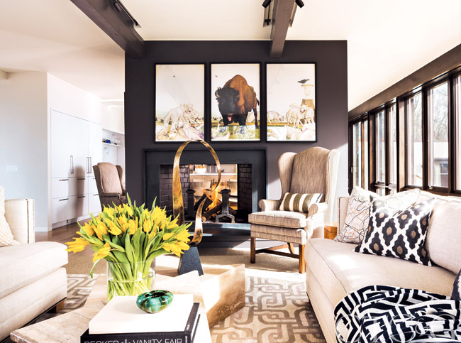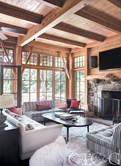All of the living spaces, such as this living room, by New York-based Carrier and Company are a personal reflection of the homeowners and are grounded in layers of color and texture.