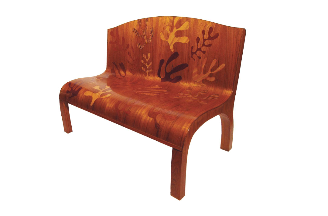 This homage to Henri Matisse by Andrew Darwin Fine Furniture Designing and Craftingis fashioned of teak, a glowing backdrop for a canvas of inlaid leaves.