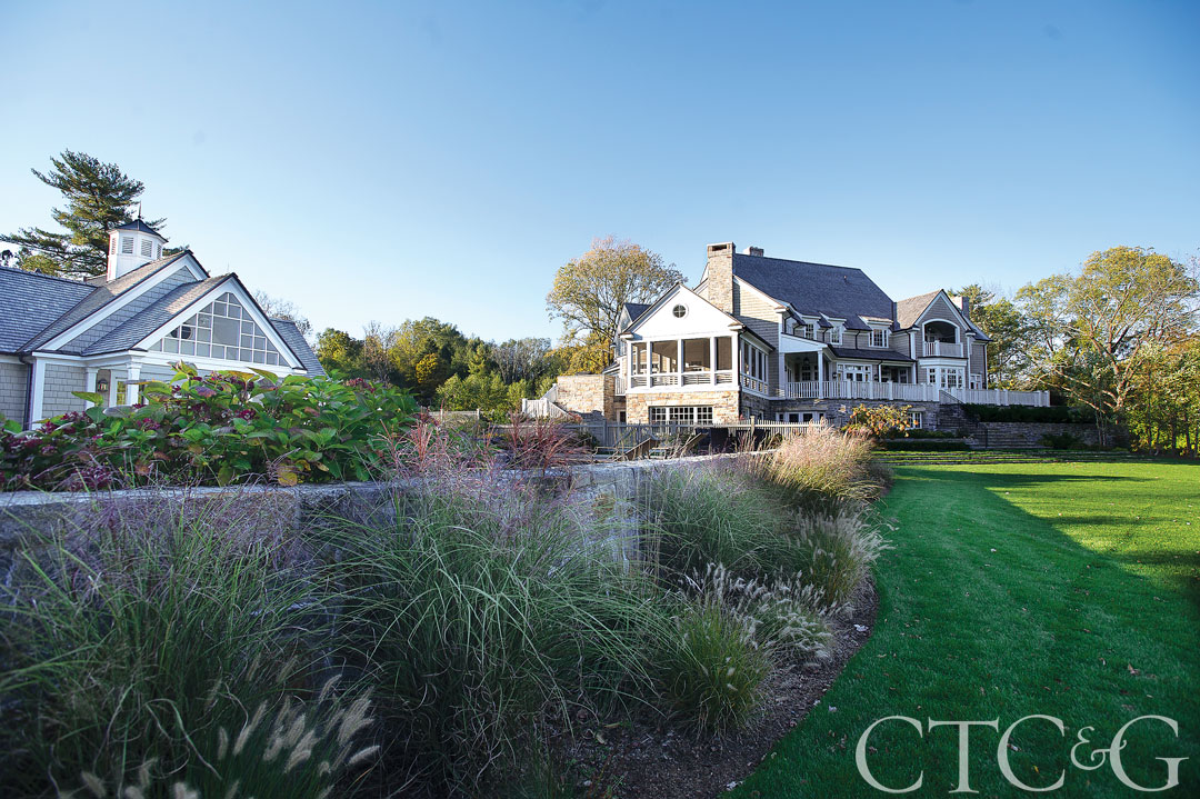 Husband and wife John and Kimberly Conte have been involved in this comfortable lakefront estate since 2006, developing the site from master plan to maintenance. With two complementary businesses—Fairfield House & Garden, a landscape construction company established by John’s father in 1937, and Conte & Conte, a landscape design practice established by John in 1997—the pair has handled the entire process, from soup to nuts. According to designer John R. Conte, managing both the design and the construction enabled him to maintain an unusual degree of control over the entire process.