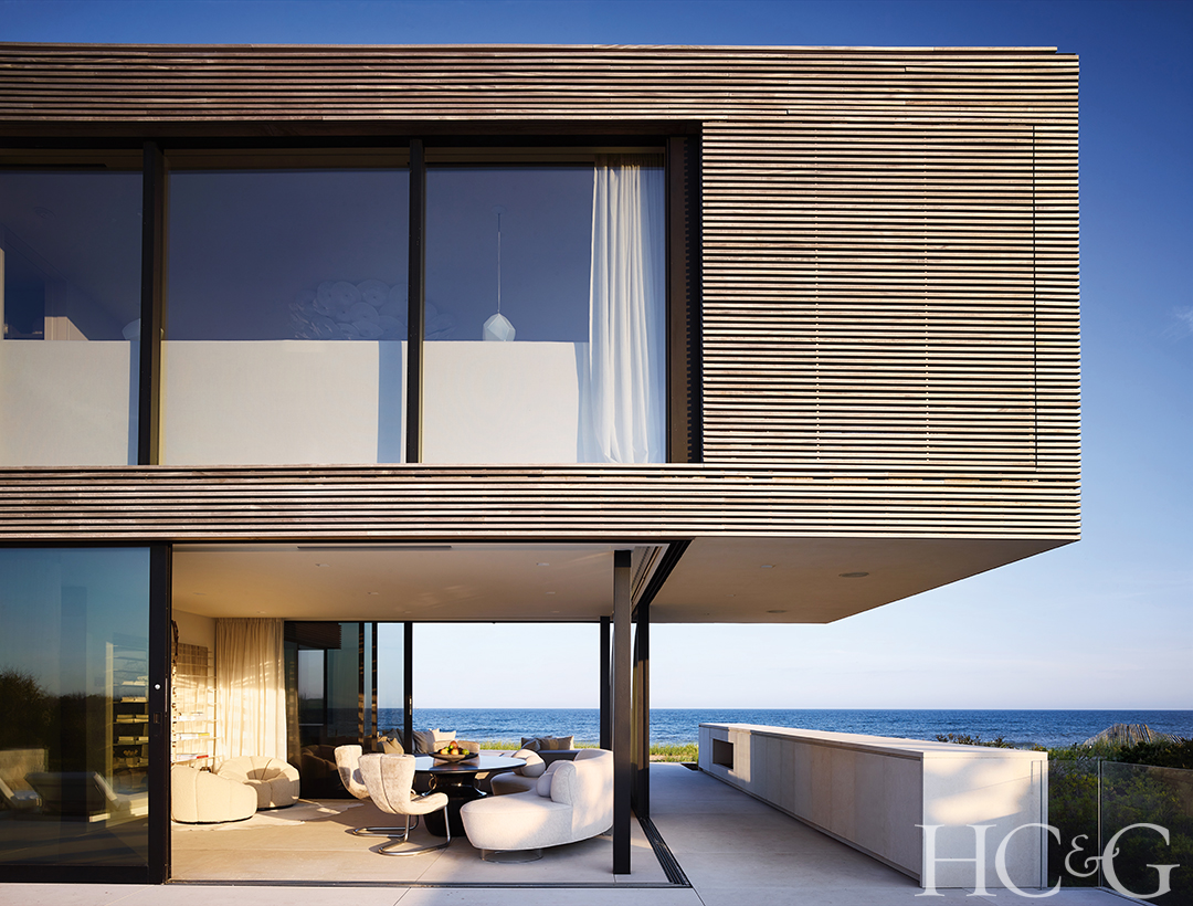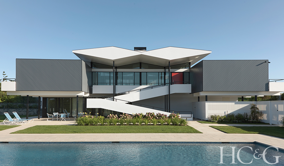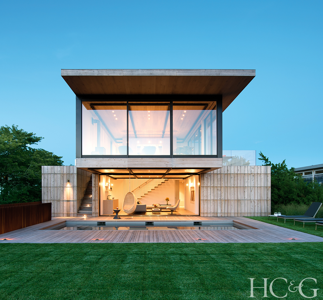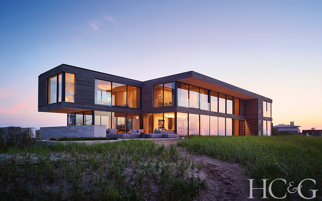 Situated between ocean and pond, this sleek Sagaponack residence features a cantilevered design that was built to weather heavy storms.