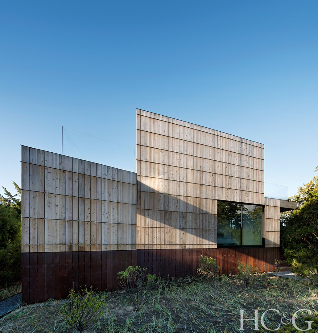 If this Amagansett home resembles a boathouse in some ways, credit the historic life-saving station across the street for inspiring many of its design elements, from cedar siding that floats within bronze bars to a staircase suspended from structural beams to a swinging chair that dangles from a cantilevered volume. Additionally, a second-floor deck and elevated seating area, which nod to the station’s lookout towers, provide ocean views. “I love the Zen palette of materials: one wood, one metal, one paint—enough said,” says judge Jesse Carrier. “And that staircase must lead to heaven!”