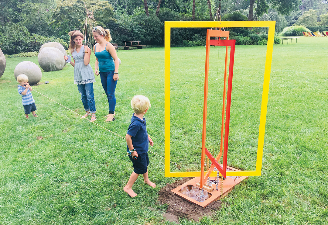Commissioned for an event at East Hampton’s LongHouse Reserve, this Josef Albers–inspired sculpture contains three colorful aluminum frames with percussion members that produce sound when rotated at different speeds.
