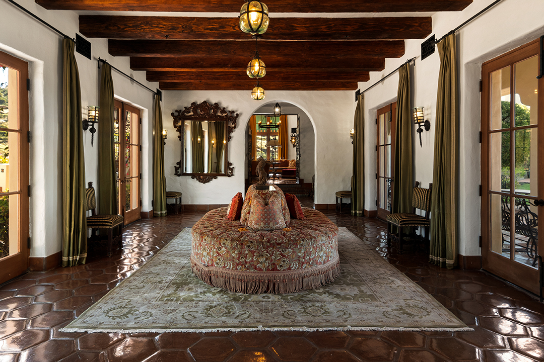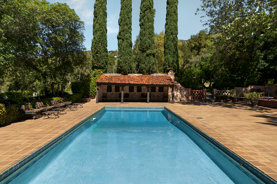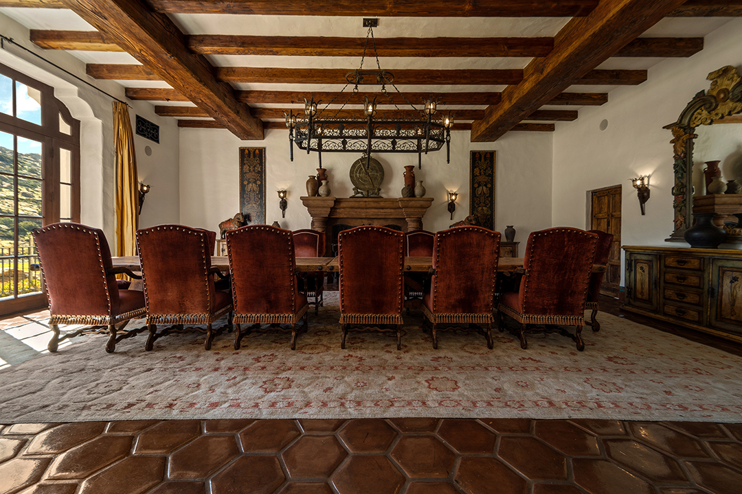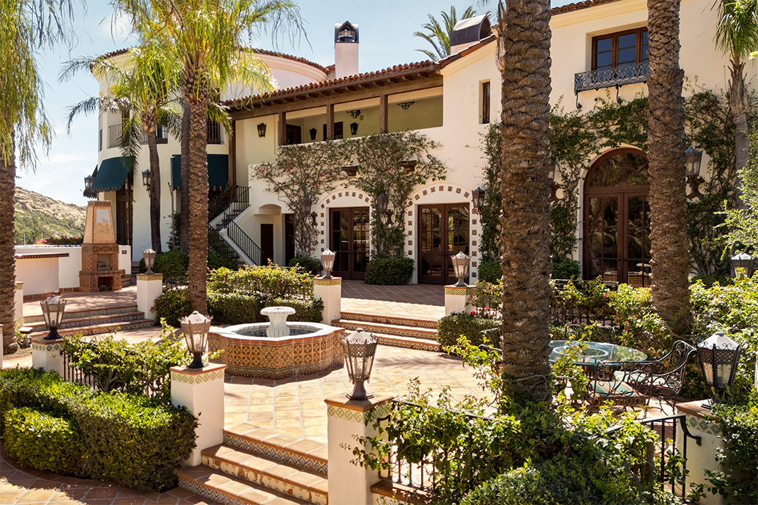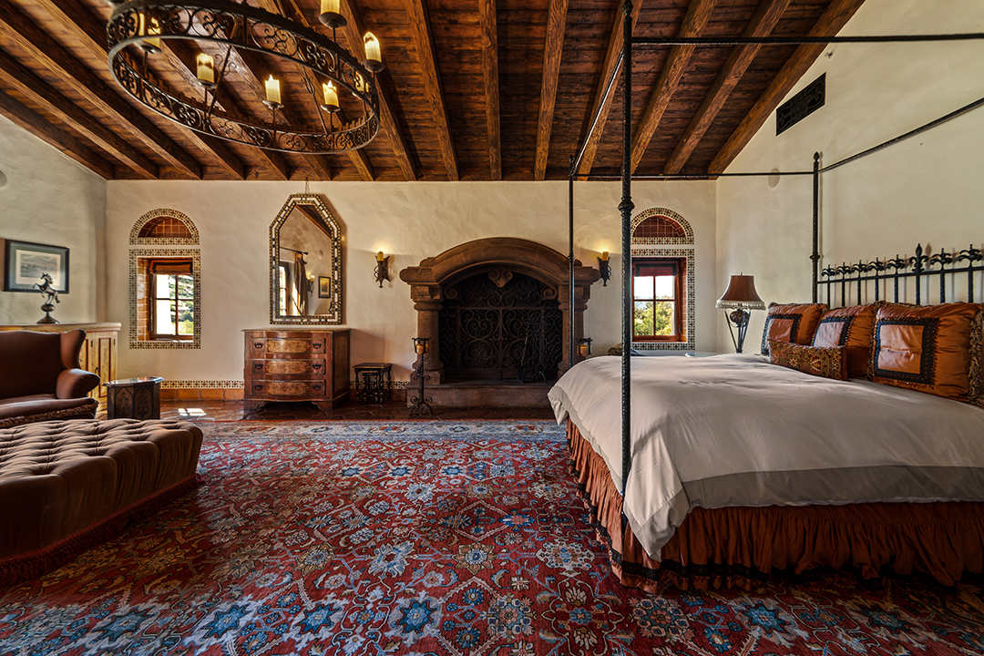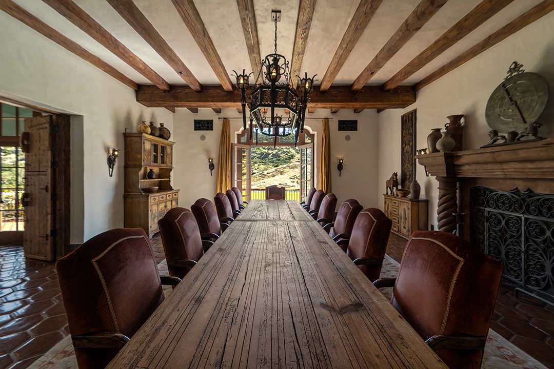 Tucked into the landscape of Southern California’s Santa Susana Mountains and displaying panoramic views in every direction, the vast estate has a dramatic presence and secluded location that has clearly attracted producers for a reason. At its center sits a 17,000-square-foot Spanish Colonial villa, where romantic arches, rustic finishes, and expansive courtyards flourish. A collection of guest houses aren’t too far, perfect for providing accommodations for wedding guests or production crews.