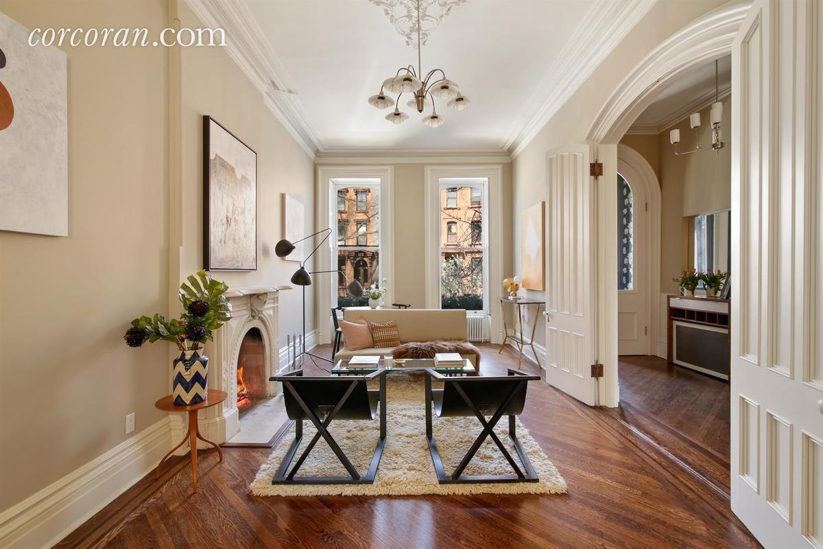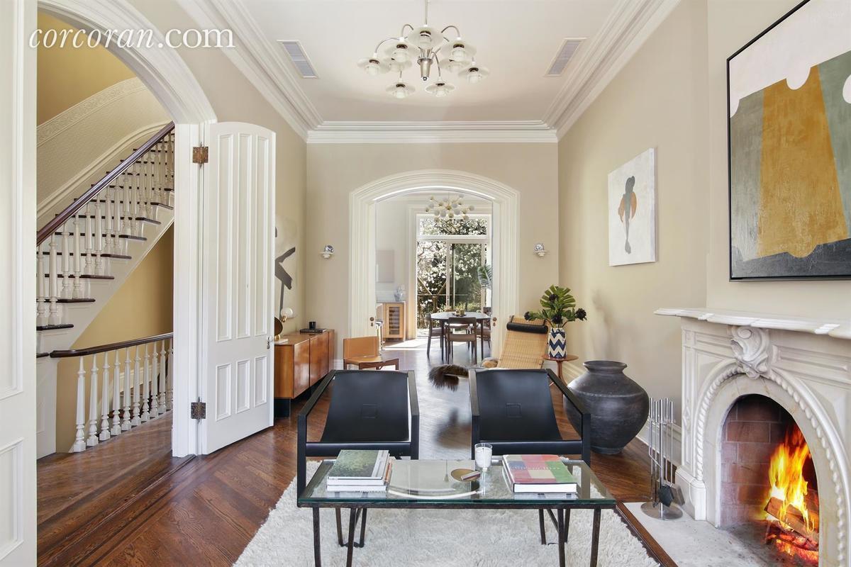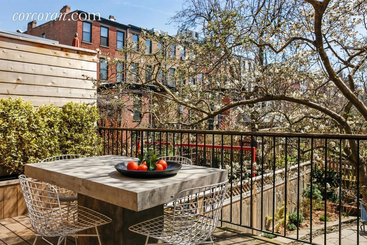 Behind a landmarked Italianate façade, the home spans 3,600 square feet across 4 stories and is currently configured as a two-family space with a garden-floor apartment accessible by a separate entrance. According to the listing, which is represented by Corcoran’s Lesley Semmelhack, the parlor floor is ideal for formal entertaining and houses a custom-designed kitchen behind etched-glass pocket doors, an al-fresco dining terrace and a graceful living room anchored by a wood-burning fireplace. An elegant staircase leads to the upper floors, where the master suite and 4 additional bedrooms can be found.