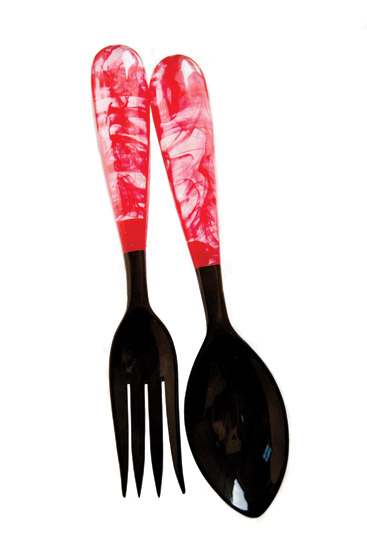 Dish out a sumptuous summer salad with these marbleized resin servers, also available in black, orange, and blue. $120 for a pair, at Marie Eiffel, 8 Grand Ave., Shelter Island, 631-749-0707, marieeiffel.com.