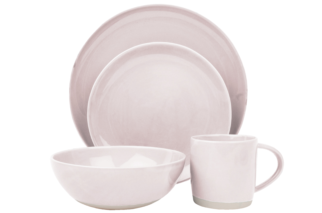 Don’t let the sweet color fool you; the Canvas Home Shell Bisque collection in porcelain is strong enough for everyday use. A textured unglazed bisque contrasts with a soft pink glaze. Starting at $6.50.