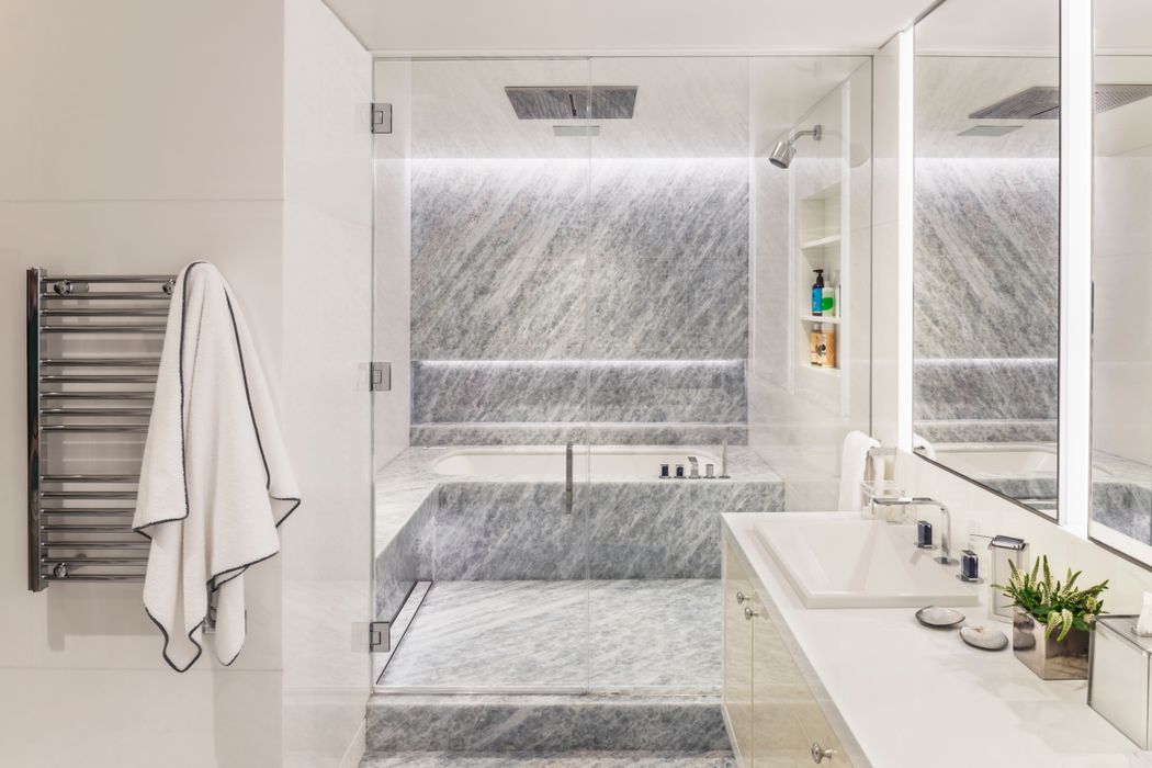 With health and wellness being talked about more than ever before, it is becoming something that buyers look for when searching for a new home, whether it comes in the form of revitalizing amenities or an ideal kitchen for clean cooking. This sumptuous unit on the Upper West Side has both those things and more. Owned by Jessica and Jason Karp, co-founders of the health food restaurant Hu Kitchen and tasty Paleo products like Hu Chocolate, this 4,300-square-foot spread is guaranteed to be a haven for your body, mind, and soul.It took three years of blood, sweat, and construction to create this perfectly balanced home in the sky, which boasts unparalleled city views through floor-to-ceiling glass walls. Three apartments were combined to make this wellness paradise, which made it possible to make a master suite that has an outstanding 2,000-square-feet. Self-care and relaxation were clearly at the front of mind when designing the suite because it boasts a spa-like bathroom with a walk-in steam shower and jetted tub, as well as a home gym, personal sauna, yoga room, and huge closet.Every decision in the apartment was made to promote wellness. Colorful Ketra lighting was put into place to aid circadian rhythms, all finishes are hypoallergenic, and windows have UV-blocking technology, and a triple-osmosis water filtration system insures you’ll have the most pure water in the city. Did you even know a home could be so healthy? Plus, a whole-house Savant automation system controls the unit’s lighting, heating, AC, blinds, and music make so you hardly have to lift a finger at home.With three bedrooms, 4.5 bathrooms, and a lovation that is mere moments from Lincoln Center, you’ll never want to let this Paleo-approved pad go once it’s yours.Allison B. Koffman and Juliette R. Janssens of Sotheby’s International Realty has the gorgeous listing, which Mansion Global first reported has famous owners.