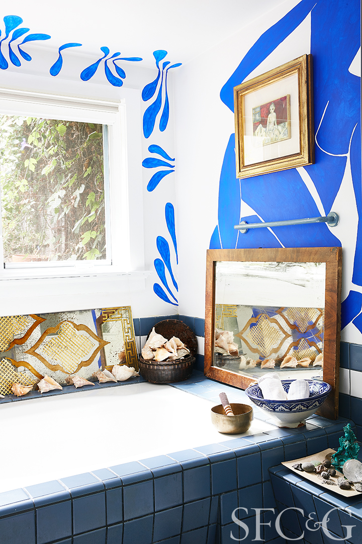 Jacobus handpainted the vibrant, Matisse-inspired figures in the bath.