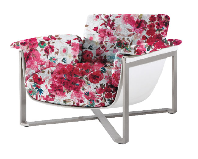 Sifas’s Kocoon lounge chair, upholstered in Flower, envelops an outdoor space with a rounded shell design and soft fabric. Sifas, through Walters Wicker (T), D&D, 212-758-0472, waltersnyc.com, sifasusa.com.