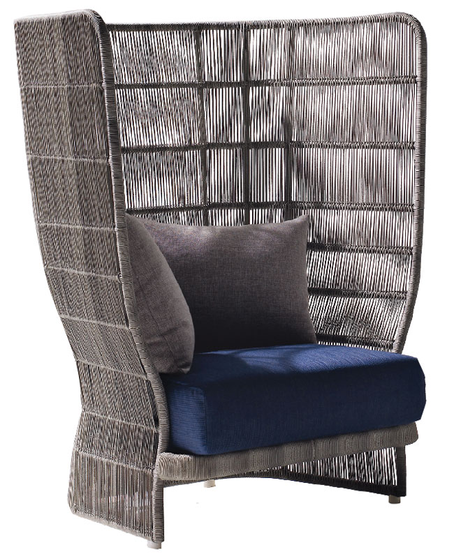 The Canasta ’13 armchair, by Patricia Urquiola, features an interlacing pattern of water-repellent polyethylene fiber. B&B Italia, NYC, 212-758-4046, through Walters Wicker (T), D&D, 212-758-0472, waltersnyc.com, bebitalia.it.