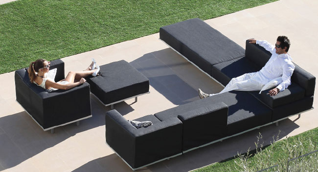Lazy, the stylish modular sectional designed by Kris Van Puyvelde, features a sophisticated silhouette and boasts comfortable cushions in all-weather upholstery to withstand outdoor elements. Royal Botania (T), NYC, 212-812-9852, royalbotania.com.