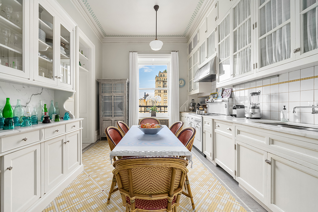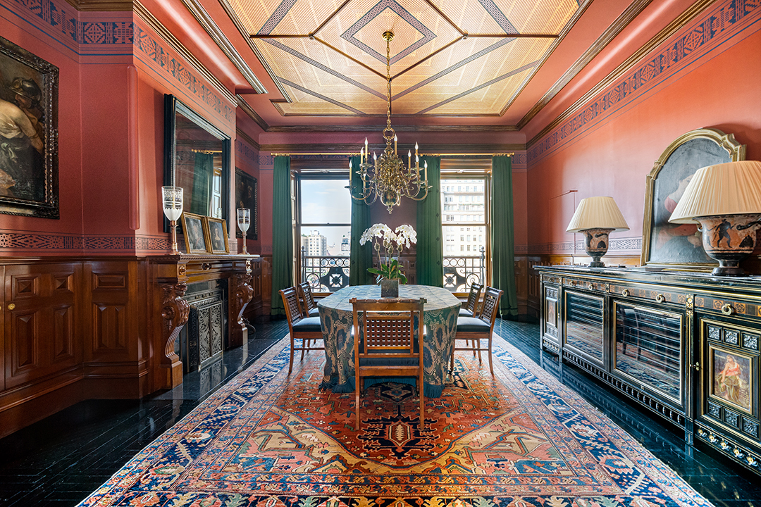 The apartment has The Dakota’s trademark 12-foot soaring ceilings and oversized windows, all with original restored moldings. With breathtaking views and 7 stunning and ornate wood burning fireplaces, it’s tough to imagine a more beautiful place for your own NYC legacy.