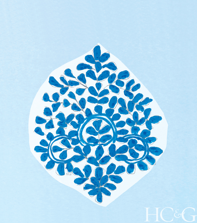 In addition to designing carpets and fabrics, Madeline Weinrib creates wallpapers, such as Moroc.