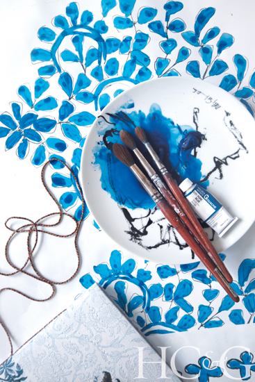 She sketches and paints all her designs in advance.