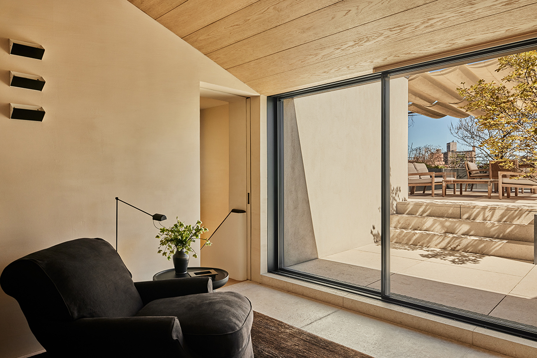 From the home’s 28 oversized sound-attenuating windows to the architectural lighting and new structural beams, Van Duysen certainly had an eye on functional upgrades as well. The expansive rooftop deck, with plantings done by landscape architect Piet Oudolf, adds yet another layer to the home’s utility and beauty. Imagine soaking in the city’s intangible energy from this perch. You can wine and dine guests around the concealed fire pit or outdoor kitchen counter, or spend mindful moments in the hot tub and sauna as the city buzzes from a distance.