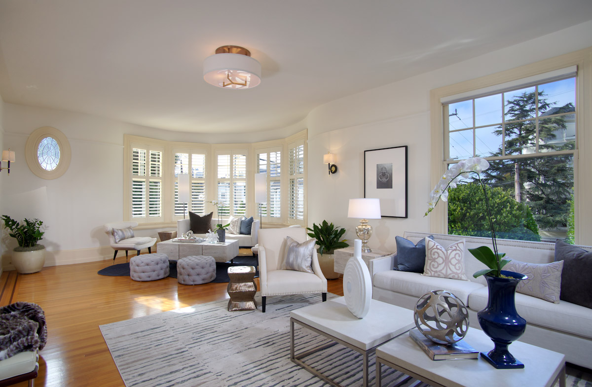 Located in Pacific Heights, the home is the quintessential San Francisco Victorian, with 4 bedrooms, 3 ½ bathrooms and 3,300 square feet of living space spread over three levels. The kitchen has been completely remodeled and now boasts high-end appliances, granite slab counters and a door to the patio, where there is a space for al fresco dining. Window-lined turrets make the whole home airy and light-filled, while classic Victorian details such as the inlaid wood flooring, custom millwork and wood-burning fireplace add charming touches.