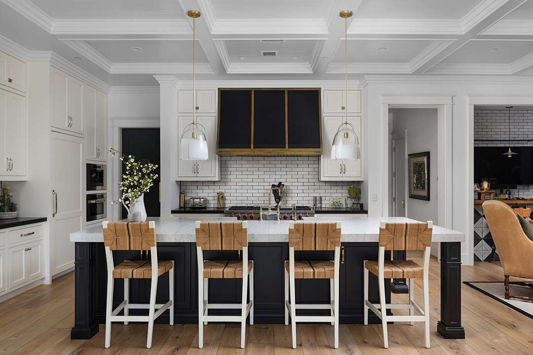 Built by Brimley Development in collaboration with interior designer Caroline DeCesare, it’s no wonder the custom spread earned a feature in Phoenix Home and Garden. Every space exhibits a close attention, and contrast is a common theme. Black accents can be found throughout—like the island in the kitchen and the wood-paneling in the study—next to walls of glass and lighter tones.