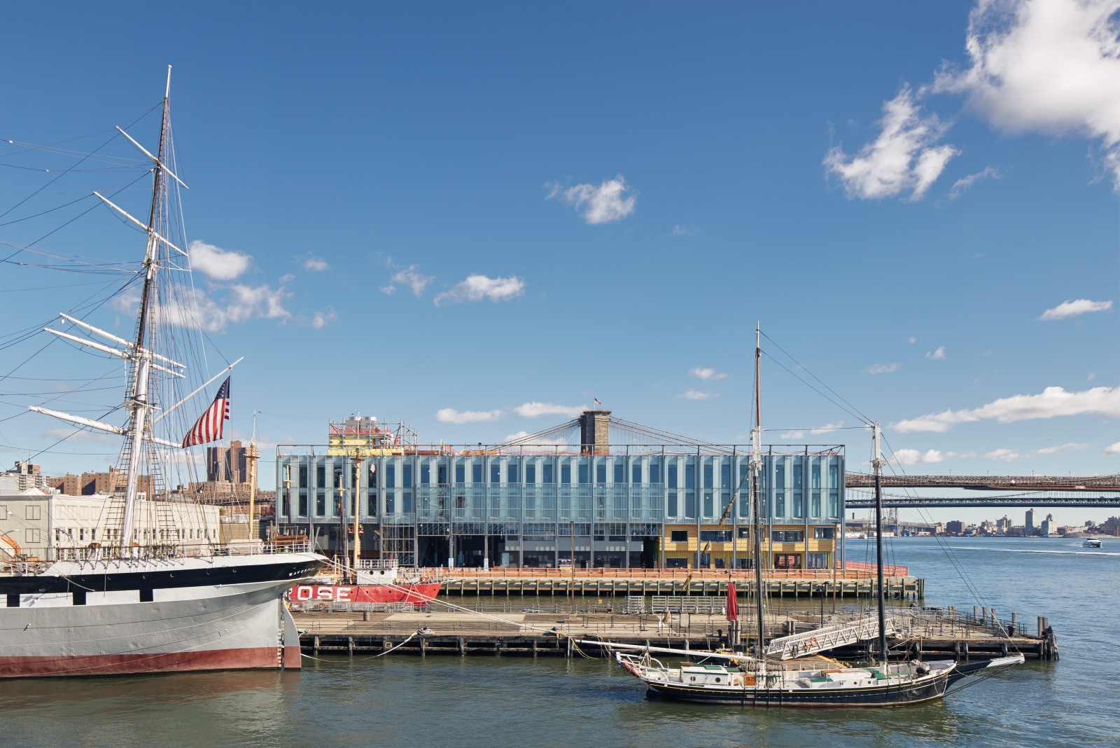 As part of the seven-building revitalization, neighborhood mainstays like the 50-year-old South Street Seaport Museum are being joined by newcomers such as the first Manhattan location of the posh iPic Theaters (now open in the Fulton Building) and Jean-Georges Vongerichten’s much anticipated 50,000-square-foot food hall (to be housed in the revamped Tin Building, which is being moved farther away from the FDR Drive and renovated by SHoP Architects). And restaurants from Vongerichten and the Momofuku Group’s David Chang will be among the tenants of the SHoP Architects–designed glass mall on Pier 17, which is expected to open next summer and features a rooftop terrace and performance space.