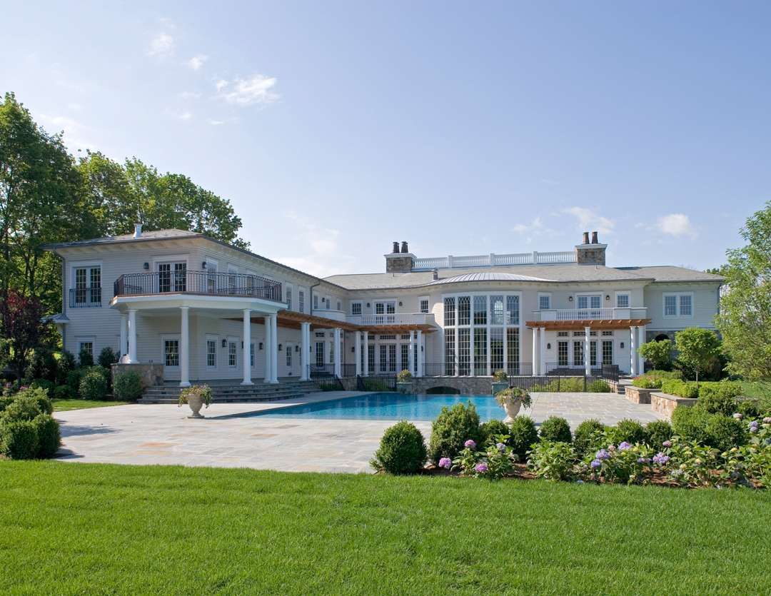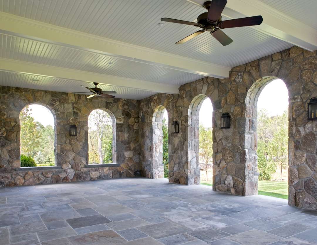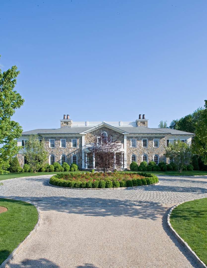 The residence was certainly made to entertain—and this is portrayed in the show. The East Veranda is adorned with stone arches, which use a local Westchester granite. “It was hard to find this color that makes it look very old.” Di Leo says the lower level was originally built with a squash court, but in the show it appears to have been changed to a basketball court. “That’s where a lot of the scenes take place—where they’re having drinks and playing basketball.”