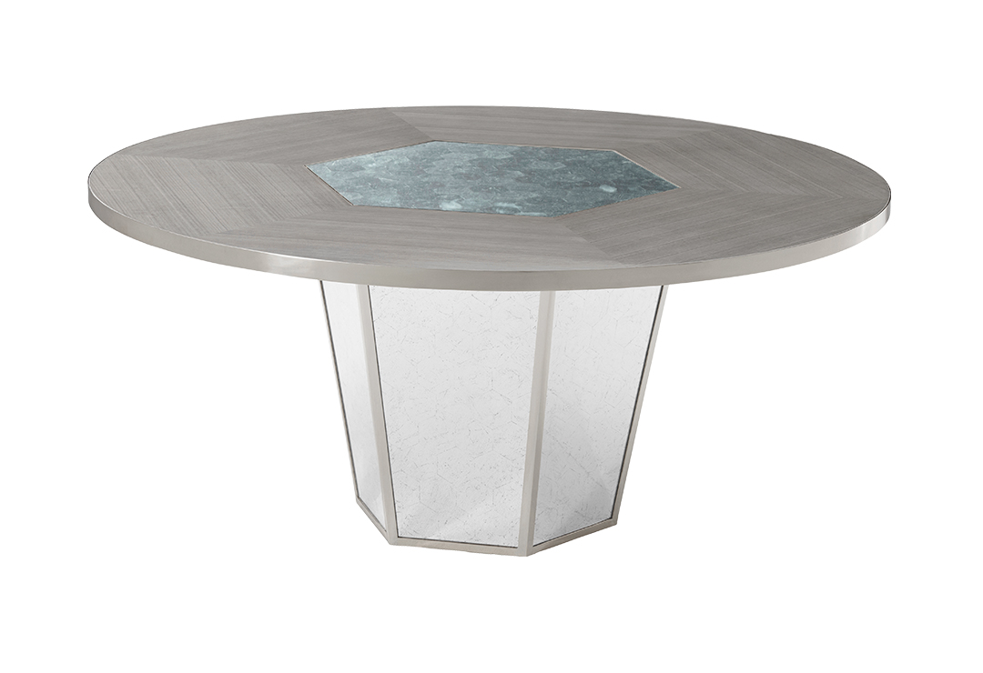 Trend 1: Specialty glass in furniture, millwork and interiors is very hot right now, but these new exciting materials are really quite classic. Laminated glass using textural interlayers, poured glass and back-painted sheets are all on trend. I’m crazy about the silver leaf–backed glass in my new Hexy dining table for Theodore Alexander. I designed it to have the leaf applied in a small-scale hexagonal pattern. Chicly reflective, not as brittle as mirror—its richness endures.