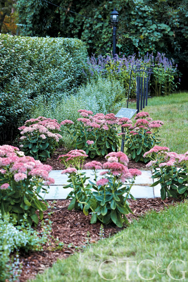 Alongside the hedge on the front lawn, the team from Freddy’s Landscape Company created a perennial border of rosy pink “Autumn Joy” sedum, feathery “White Cloud” calamint and “Purple Haze” agastache. Additionally, the team provided a variety of shrubs and trees at points throughout the property. According to Freddy Miraballes, his favorite part of the project was being able to create an outdoor space that complements both its surroundings and the interior of the home.