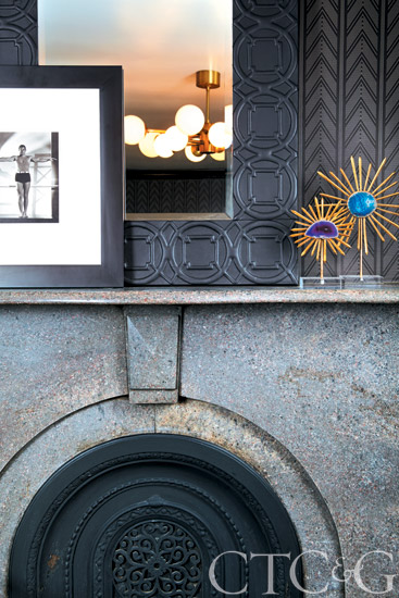 The original fireplace inspired the room’s initial design. To shop a selection of items featured in this room, click here.