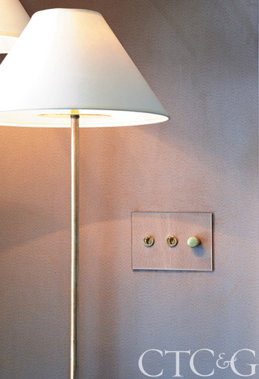 Forbes & Lomax light switches blend into the wall next to a Nierman Weeks s floor lamp.