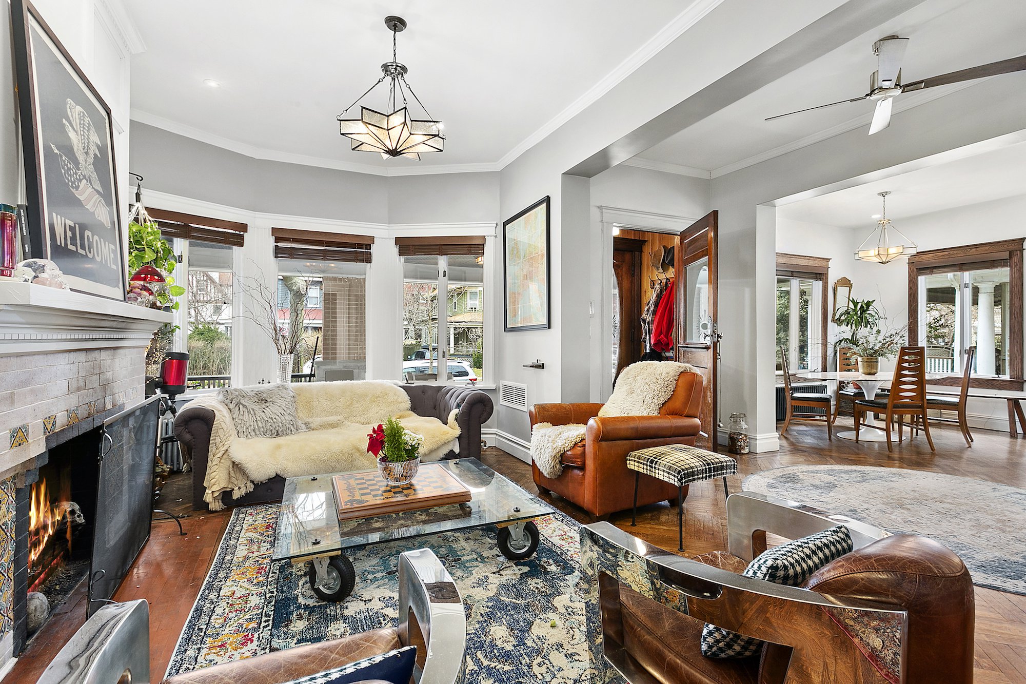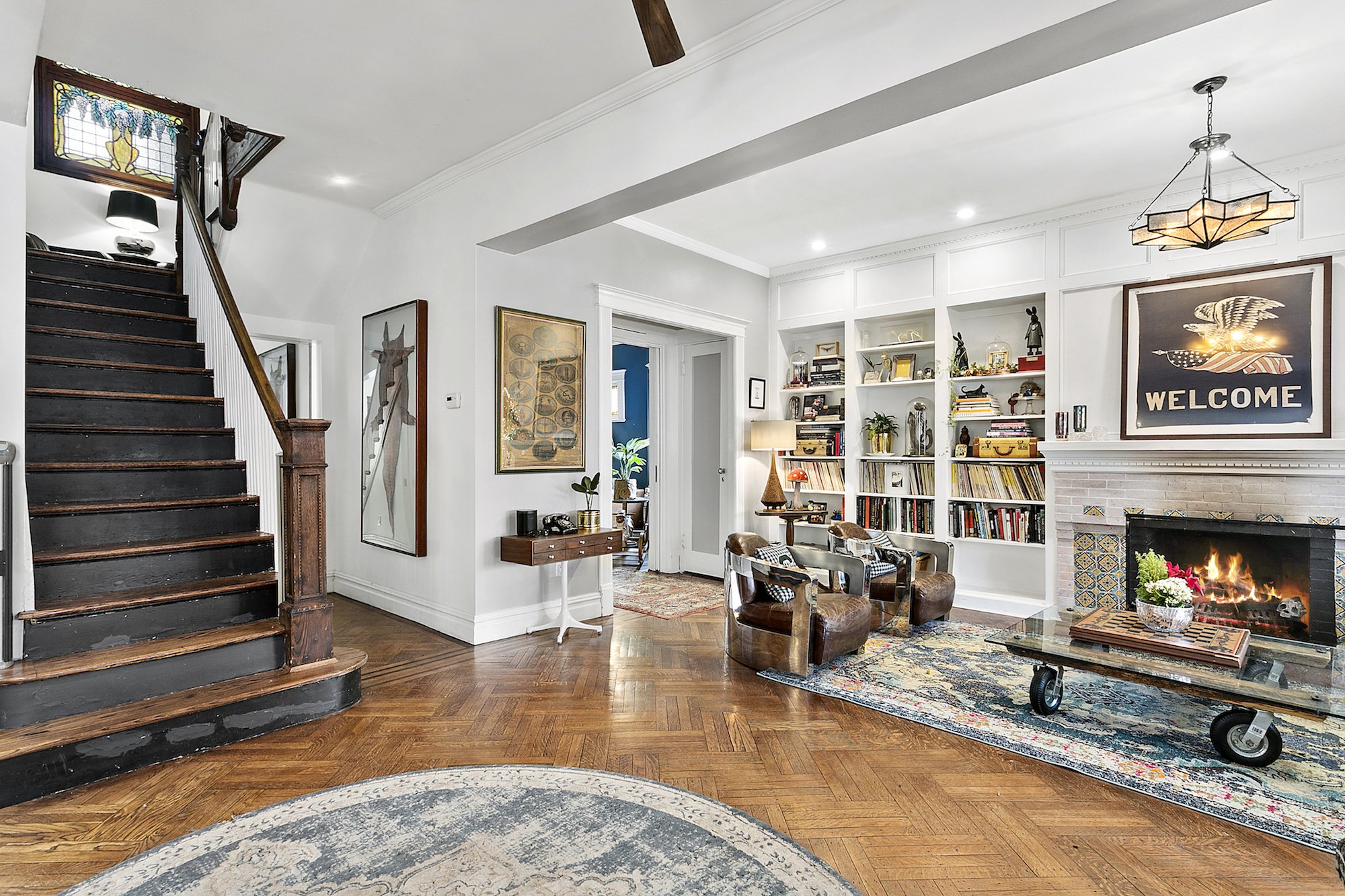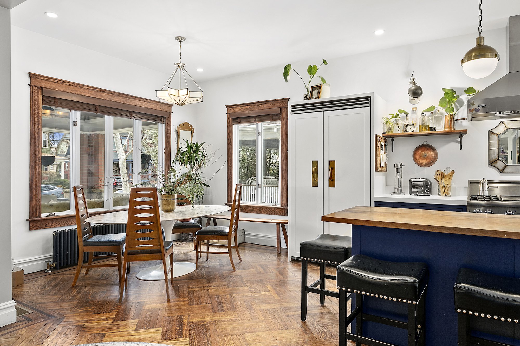 In the historic Ditmas Park area of Brooklyn’s Flatbush neighborhood, a monumental sale just took place. Audrey Geldman, co-founder of the praised New York women’s co-working community called The Wing, paid $3.2 million for a gorgeous 6-bedroom townhouse. This price is unheard of in the area, which normally prices homes somewhere around $2 million.Not only is this 1915-built home the priciest pad in Ditmas Park, but it is also one of the most unique. It has rare features like a classic wraparound front porch and two-car driveway, making the place feel like home sweet home as soon as you see it.Inside the 6,036-square-foot home, the spaces are bursting with personality and style. Much like the funky and expressive design of The Wing, the interiors are bright and seem ideal for drawing inspiration. The special abode has been renovated from top to bottom, now including a stunning finished basement with a media room perfect for lounging. Original details were carefully preserved throughout the revamp process, so all the home’s historic charm is still intact. Beautiful millwork and moldings can be seen throughout and huge windows allow light to pour in wherever you are.Now, Geldman has an incredible place to live to match the unparalleled co-working spaces she has created. Laura Rozos of Compass had the listing, which 6sqft first reported sold to The Wing co-founder.