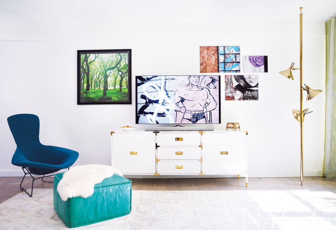 In photographer Brian Leighton’s Midtown East apartment, a television on the credenza displays a rotating slideshow of his latest photographic series and becomes part of the gallery of artworks that hang around it.