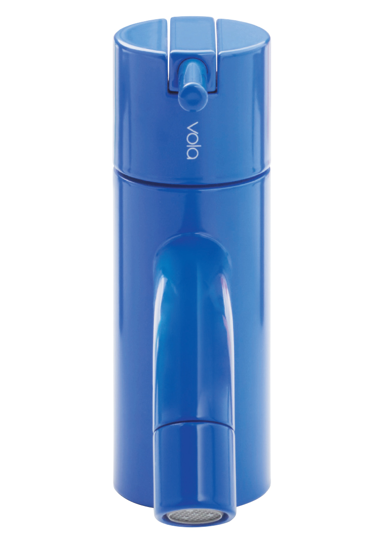 The iconic Vola faucet, designed by midcentury master Arne Jacobsen for Hastings, adds a punch of color in the bath in a choice of 14 bright shades. NYC.