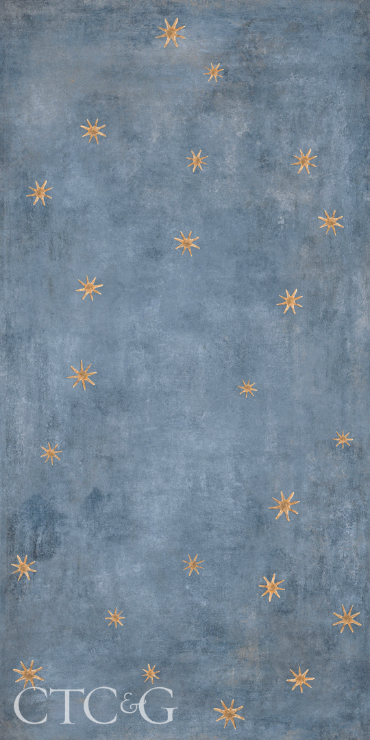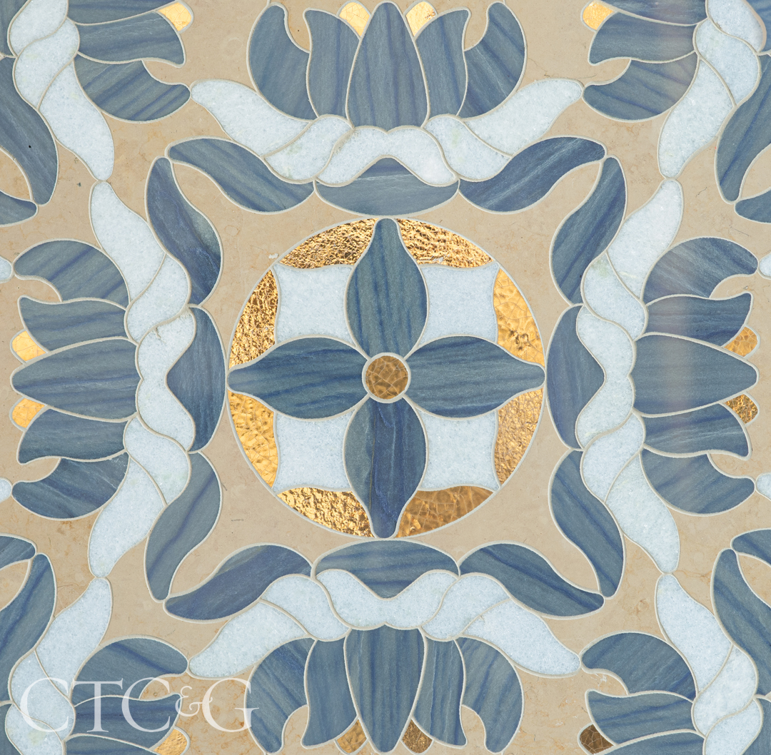 NEW RAVENNA’s San Marco collection, inspired by Venice, includes Caterina, which has serene hues evocative of the fog that shrouds the city in the winter, the blue mist of the lagoon, and the golden stars in the night sky. Available through Greenwich Tile & Marble.