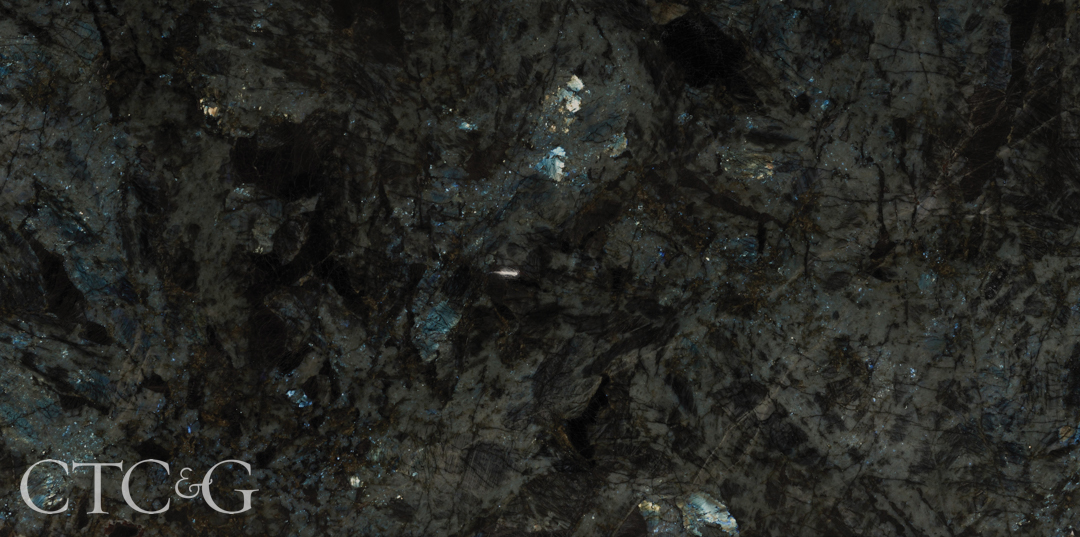 Quarried in Madagascar, Lemurian Blue granite from BAS STONE boasts rich deposits of labradorite—a crystal that is renowned for its healing properties. Its iridescent quality creates a captivating play of colors that shift with the light.