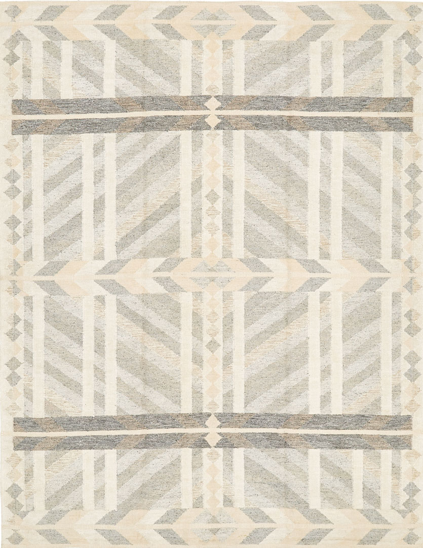 Evoking the folkloric nature of Scandinavian design, the flat-weave rug from ABC Carpet & Home sports a zigzag pattern in soft hues. Handwoven in India in a wool blend. NYC, 212-473-3000.