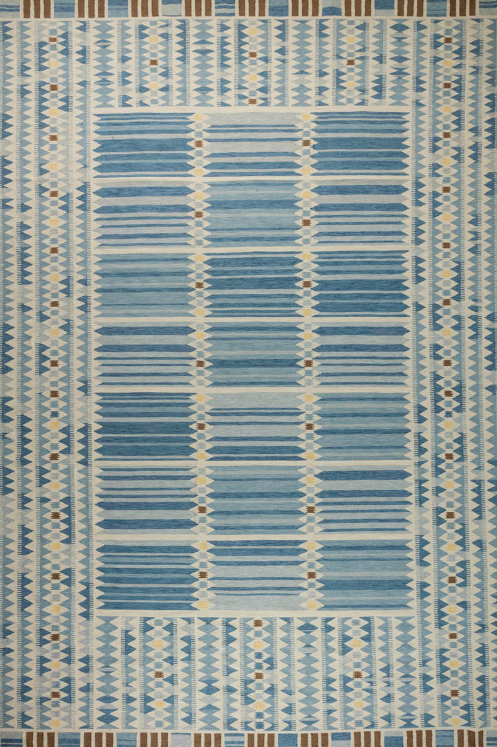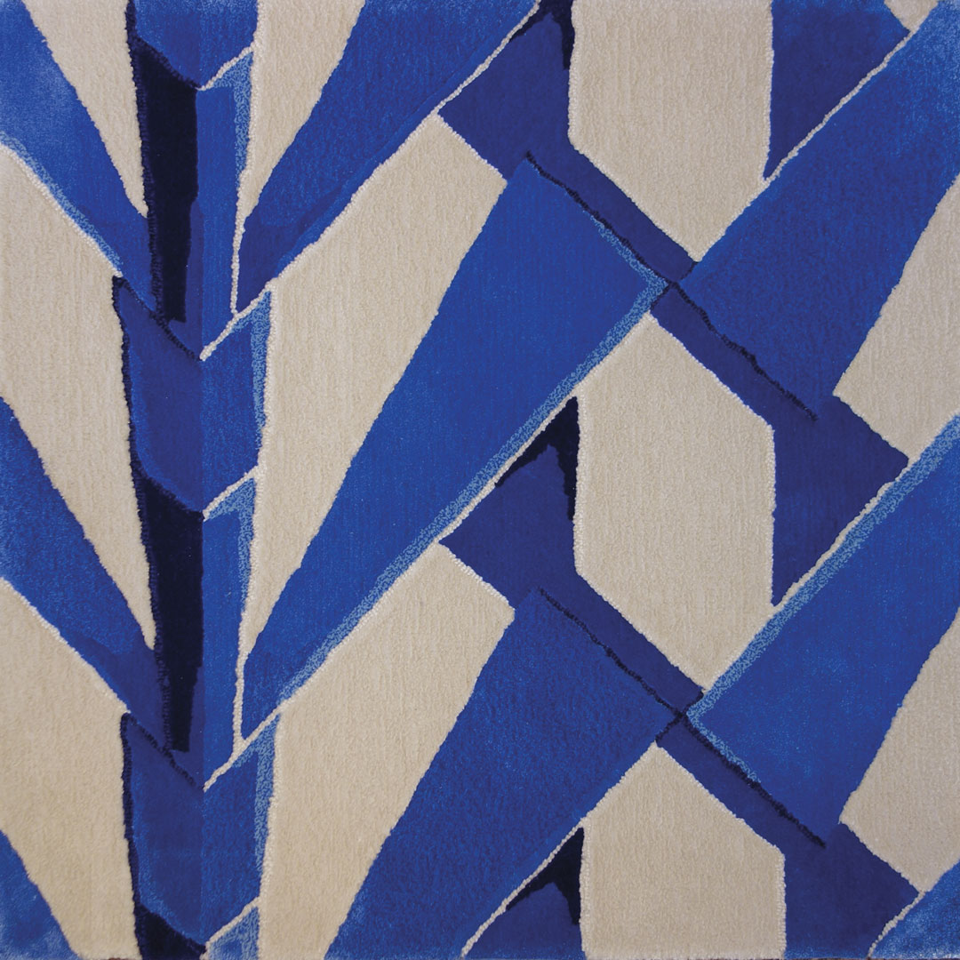 Blue Square, designed by Brett Beldock for Doris Leslie Blau, is hand knotted in wool silk blends, and is available in custom sizes. NYC, 212-752-7623, (T).
