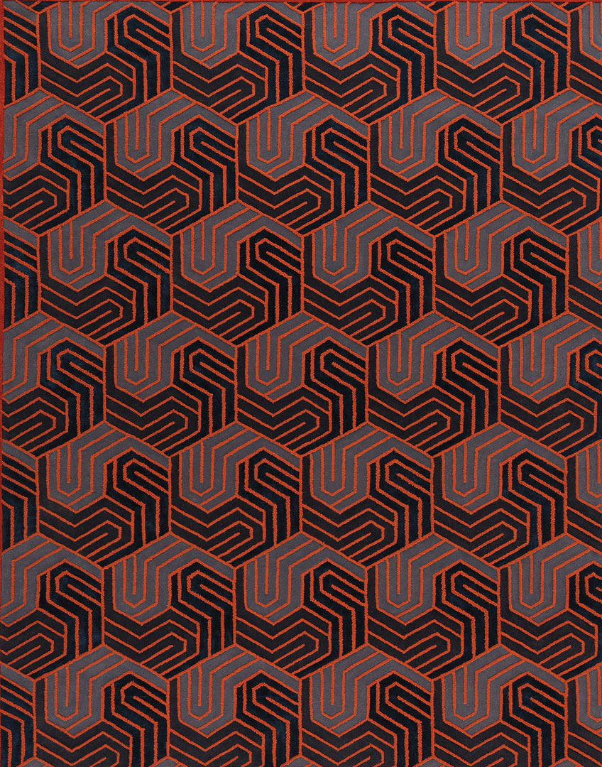 Optical hexagons, reminiscent of the crystalline structure of Graphene—the rug’s namesake—form a graphic pattern in the Lorenzo Castillo collection for the Rug Company. NYC, 212-644-9200.