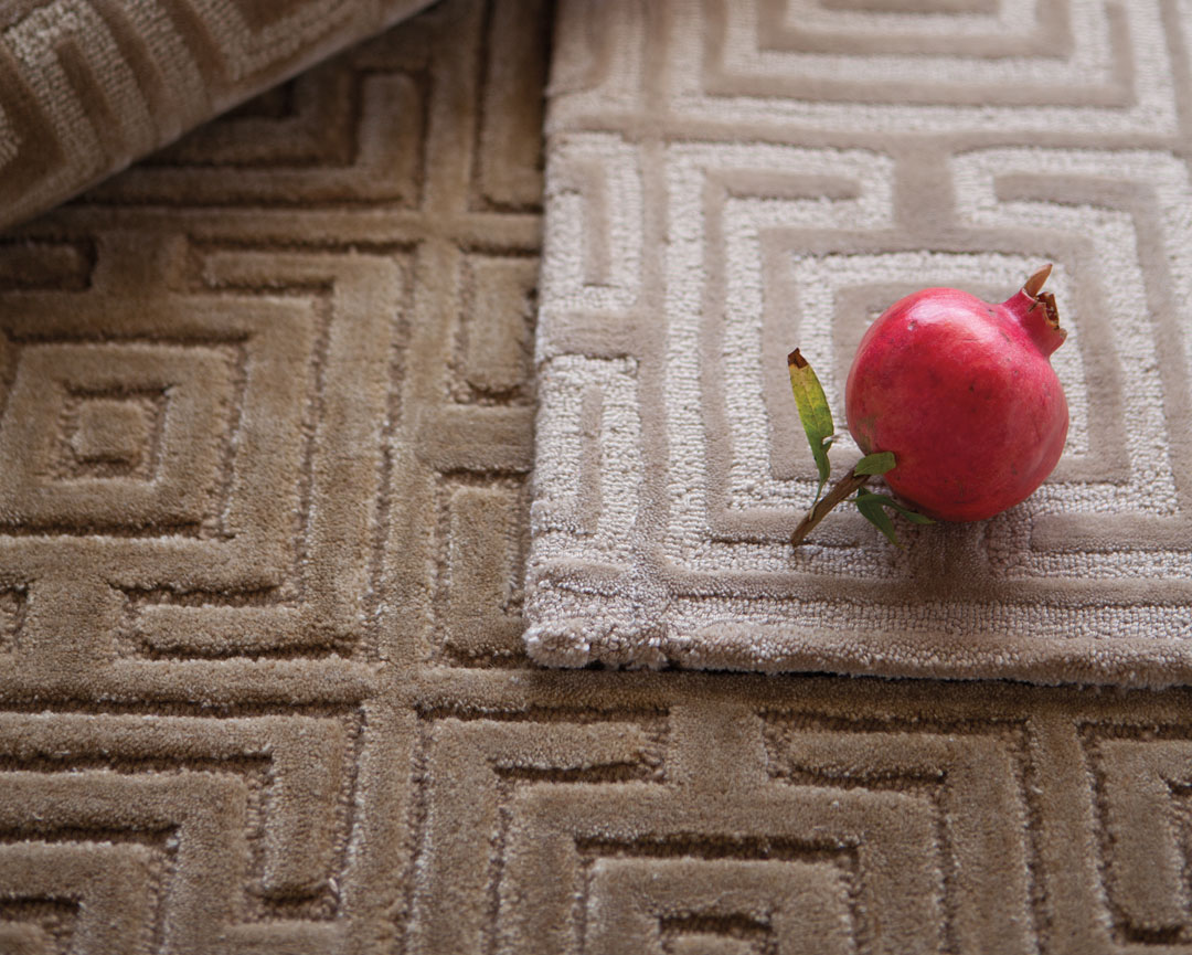 Cybill, by Elizabeth Eakins, is handmade and hand-tufted in a blend of silk and wool. The combination of fine loop and velvet delivers a dimensional texture. Norwalk, 203-831-9435.