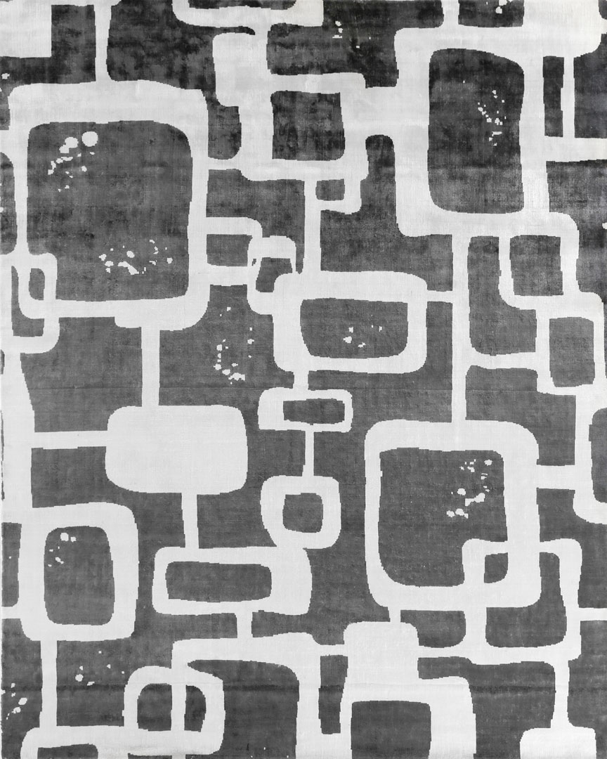 The Linked Up rug, by designer Linherr Hollingsworth for Kravet, is offered in five muted organic shades from bronze to indigo. Made in India and handloomed of 100-percent Viscose. D&D, 212-421-6363, (T).