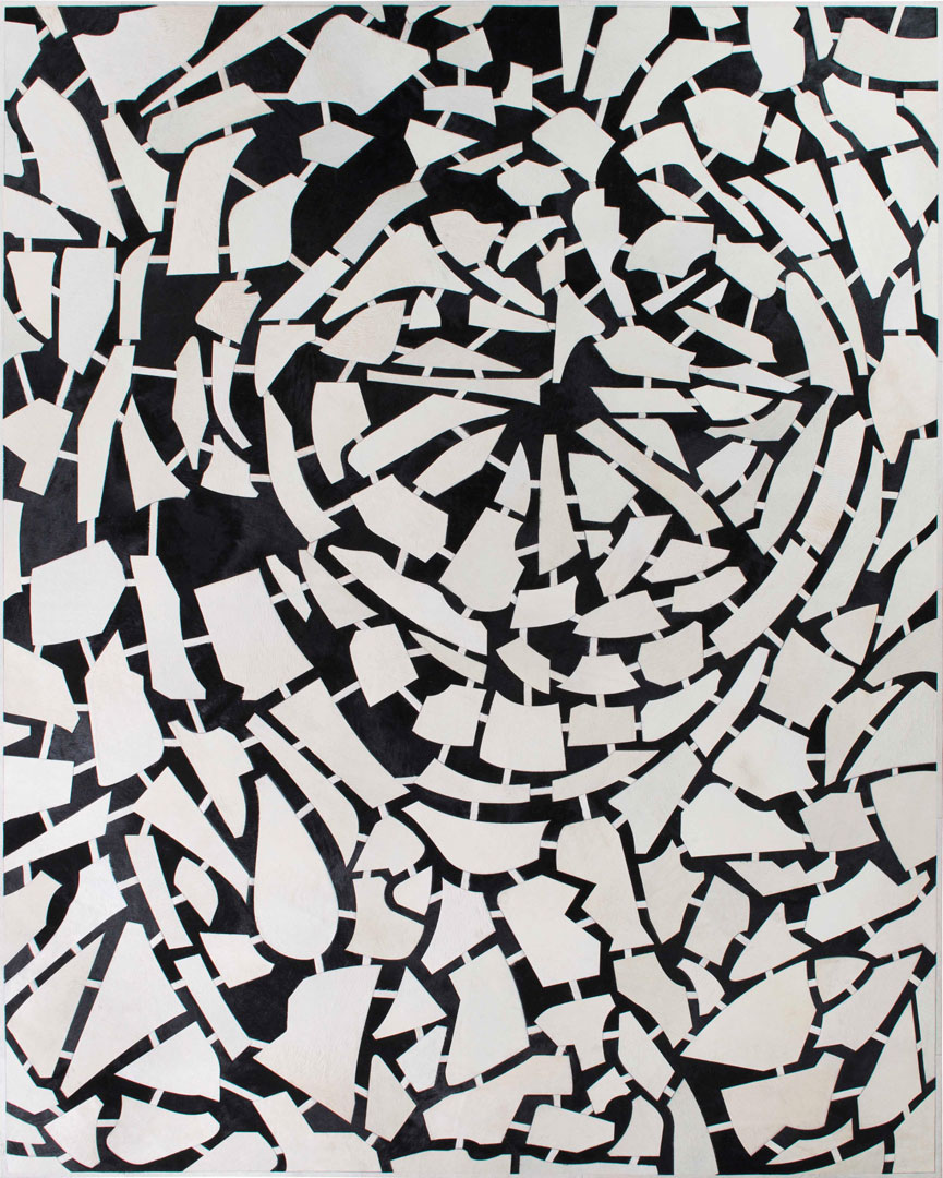 Element II, a hair-on-hide rug in ink and cream, crafted in Texas, is part of the Kyle Bunting Artist Collection. The rug is the vision of artist Abidemi, depicting the infinite possibilities of space. Through Edelman Leather, D&D, 212-751-3339, (T).