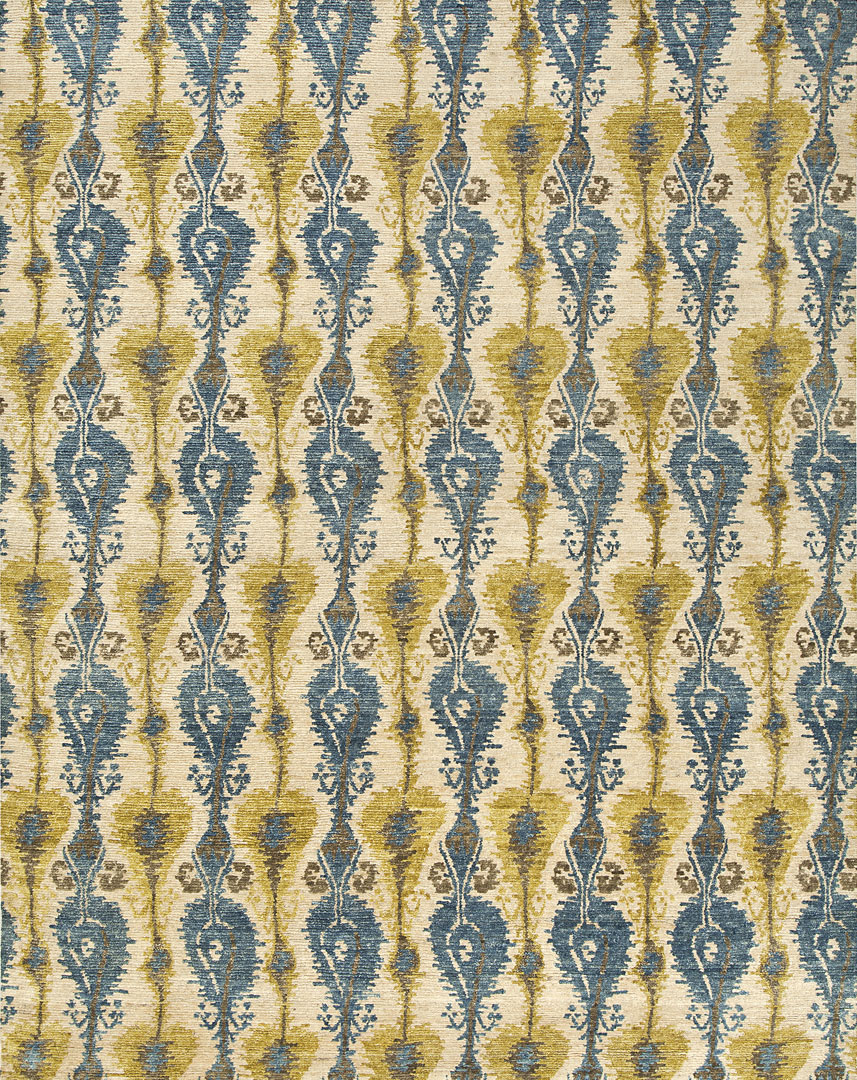 Made in Nepal, but inspired by the hand-painted scarves of Brooklyn textile artist Susan Steinbrock, the Butterscotch rug in wool and silk is from Classic Rug’s Color Collection. D&D, 212-832-3338, (T).