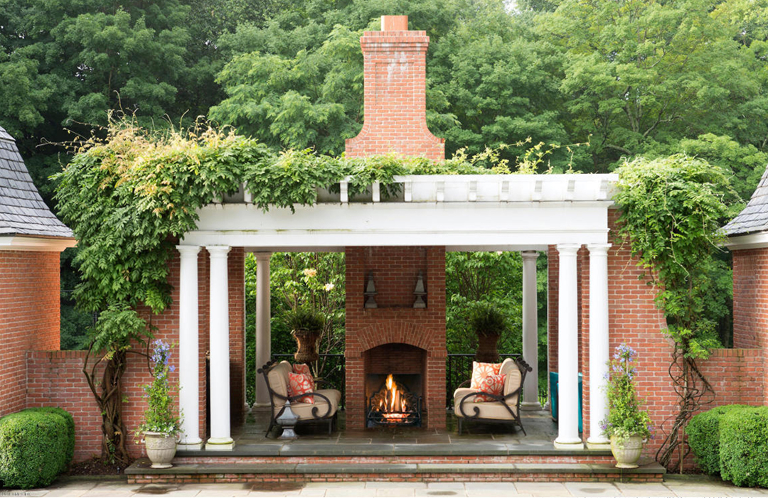If your broker asks you to “take it outside,” she’s not inviting you to rumble. Rather, a tour of outdoor rooms, gardens and other exterior spaces is likely in the offing—which, this month, might even eclipse the home’s indoor pleasures.An outdoor room offers the best of all worlds: a place to commune with nature without the hard work of hiking or gardening. And a new $15 million Greenwich listing takes outdoor chilling to the next level, with multiple spaces for doing nothing at all. It’s hard to pick a favorite among them, but we’re partial to the many-columned pergola with a redbrick fireplace, which echoes the façade of the French-style main house. Bracketed by two cabanas, the pergola steps down to the pool, a stone terrace and a pool house with another fireplace and a wet bar.On the nearly four-acre spread, there’s also a garden room next to a waterfall, formal parterre gardens, a tennis court and a fire pit. The 12,000-square-foot interiors, designed by Cindy Rinfret, are swell as well. Highlights include a dramatic entry hall with a curved staircase, a handsome, wood-paneled library and a main-floor wine room and bar. It is listed with David Ogilvy & Associates.